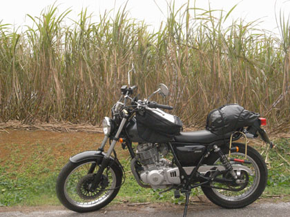 写真はサトウキビ畑。ただいま収穫真っ最中。